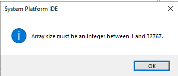 En los atributos de instancias del IDE, existe un límite para los elementos de array y es de 32767 elementos.