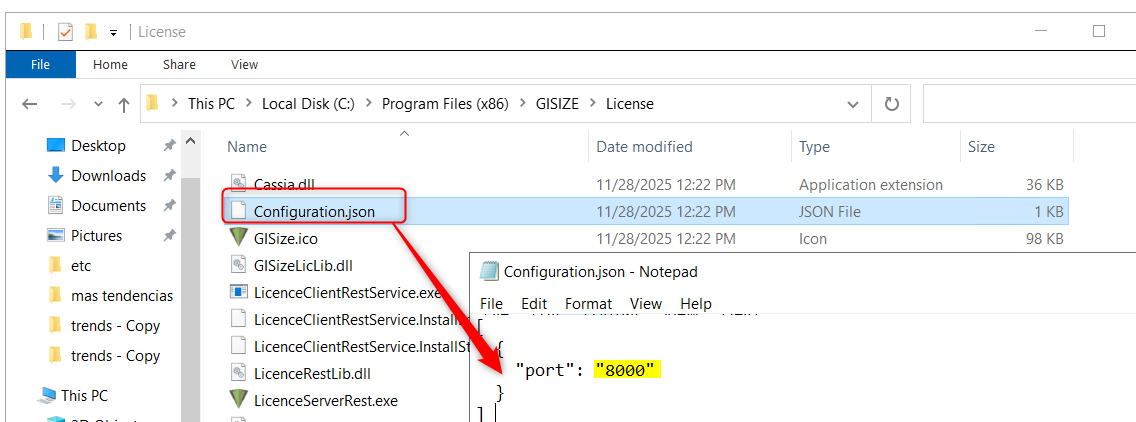 - O bien, modificar el puerto en la máquina dónde está el servidor de licencias y máquina cliente: