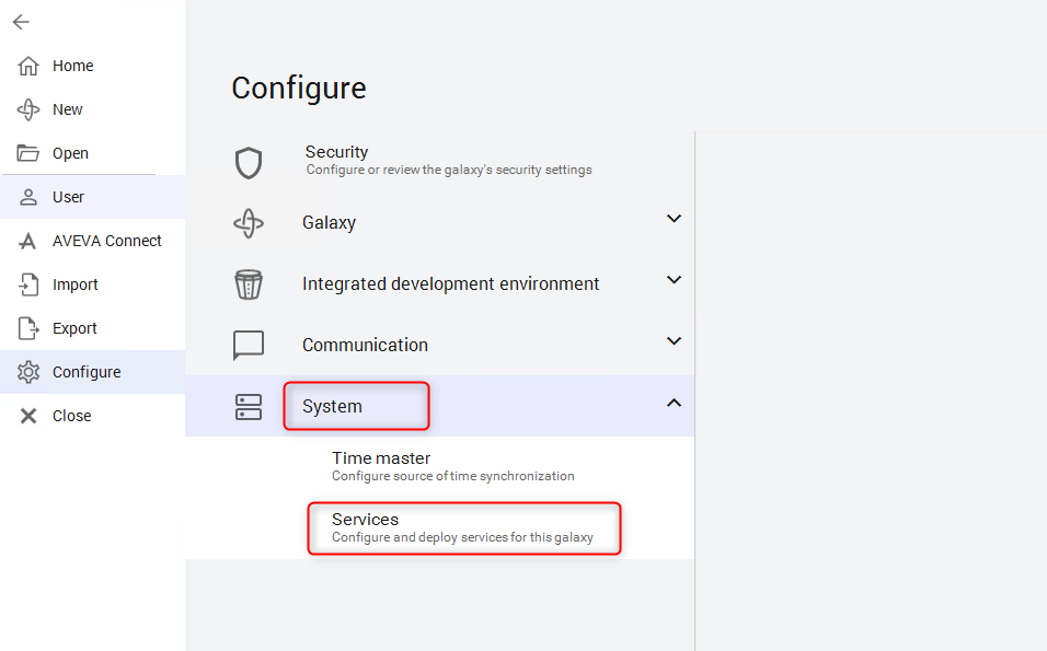 2. Seleccione System y, a continuación, Services.