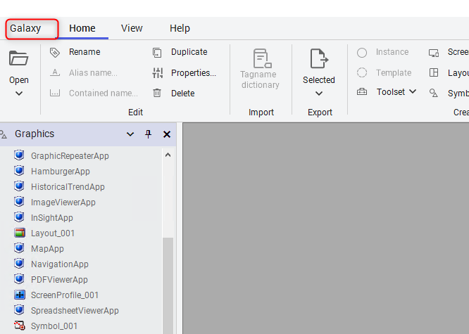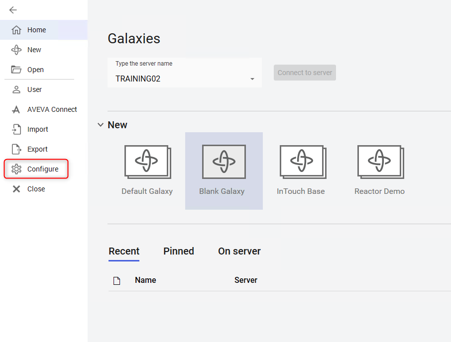 1. En la pestaña IDE, seleccione Galaxy y, a continuación, Configure.
