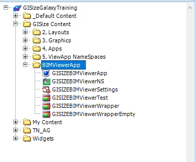 - Crear una nueva Template derivada de $ViewApp para crear nuestra aplicación OMI de prueba. En este caso la llamaremos $BIM_ViewApp. El proceso de configuración de $BIM_ViewApp seleccionar el Layout llamado GISIZEBIMViewerTest y que se trata de un los objetos que importamos en el paso anterior.