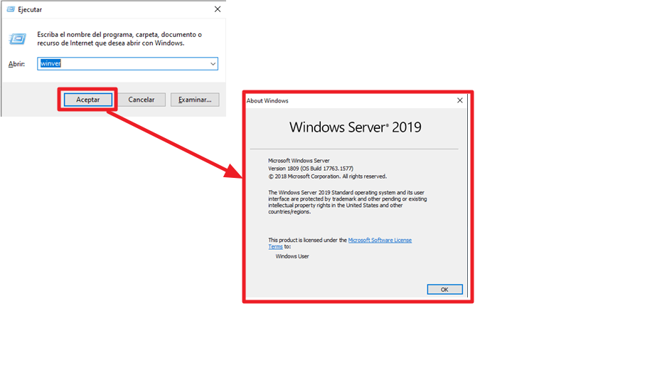 Indicar la versión que tiene instalada de System Platform, lo puede ver desde el panel de control, junto con la versión de sistema operativo, para ello puede ejecutar “winver” desde Windows como se ve a continuación: