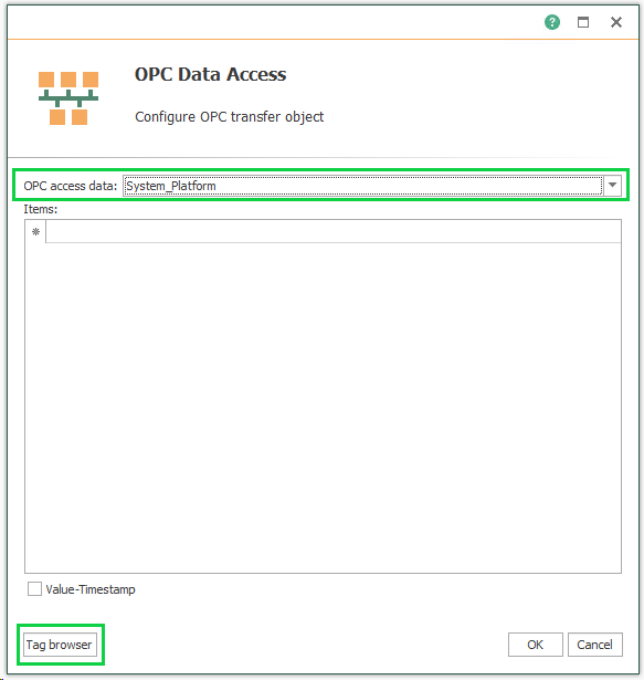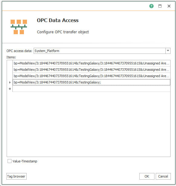 La acción previa añade los elementos seleccionados a nuestro objeto OPC Data Access donde podemos pulsar "OK" para aplicar.