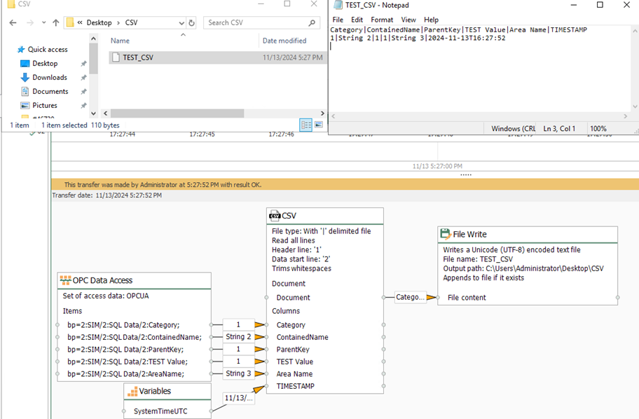 OPC y la escritura en un txt: